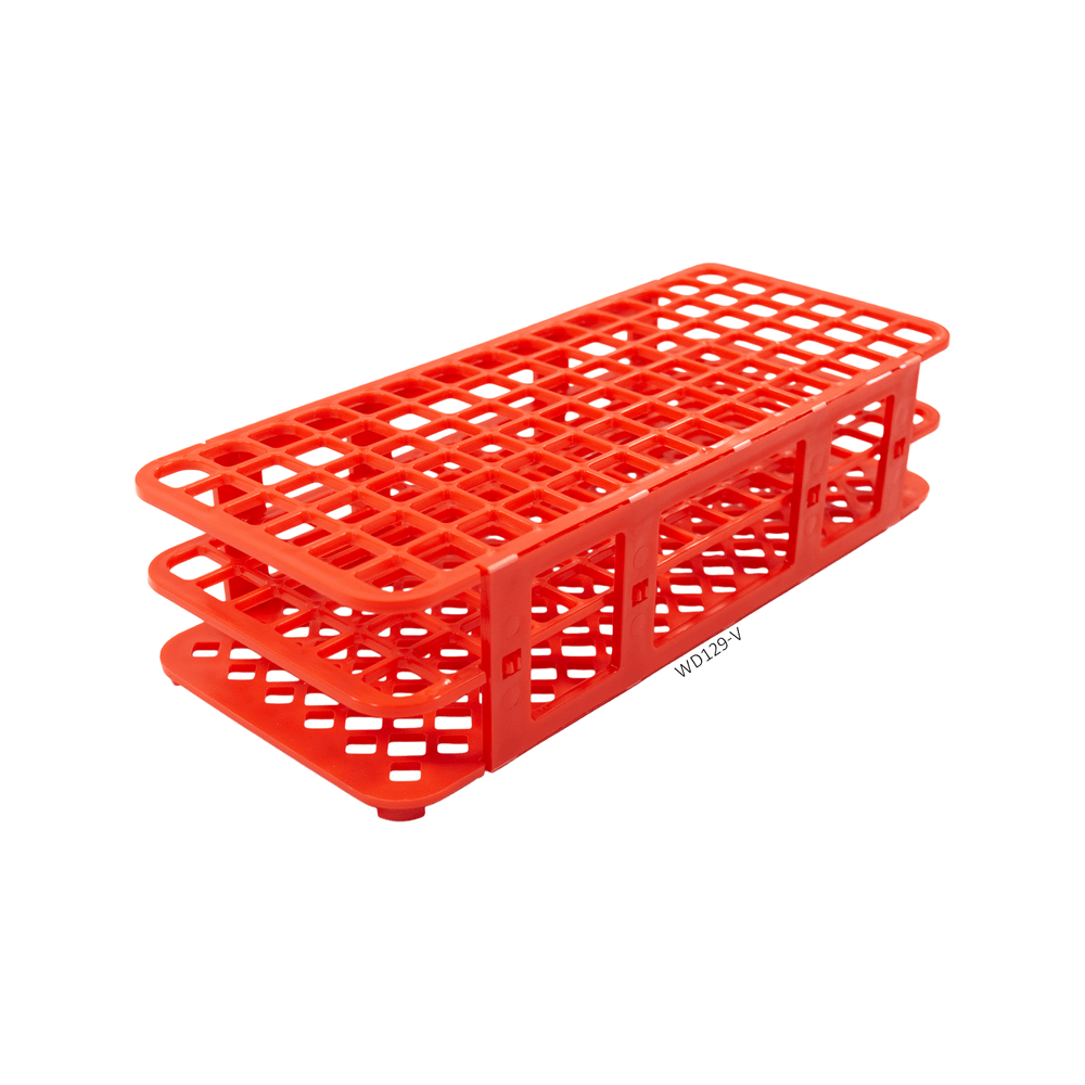 Estantes para tubos fabricada de polipropileno, com 90 furos para tubos de 13mm e índice alfanumérico. Podem ser usadas em banho-maria, estufas e freezers. São Autoclaváveis à (121ºC, 15psi, 15min).