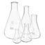 Frascos Erlenmeyers, fabricados em vidro boro 3.3, com gargalo estreito, orla e graduação permanente.