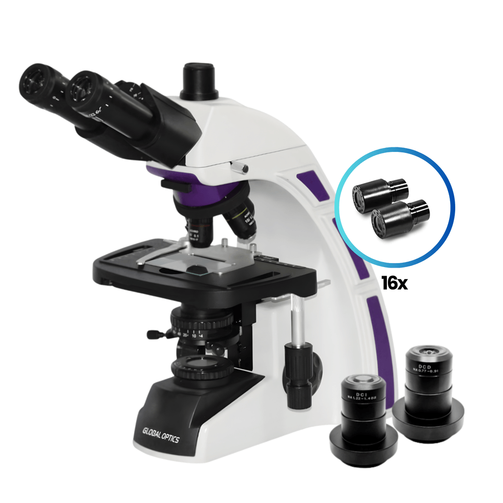 R: O Microscópio Global Optics NO228T é um microscópio biológico binocular de ótica infinita planacromático LED, projetado para uso profissional em laboratórios clínicos, veterinários, de ensino e pesquisa.