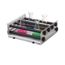 Plataforma com 6 barras cilíndricas presas por parafusos e base revestida em sílica gel, pode ser utilizado com diversos tipos de frascos, como erlermeyers, balões e béqueres.
